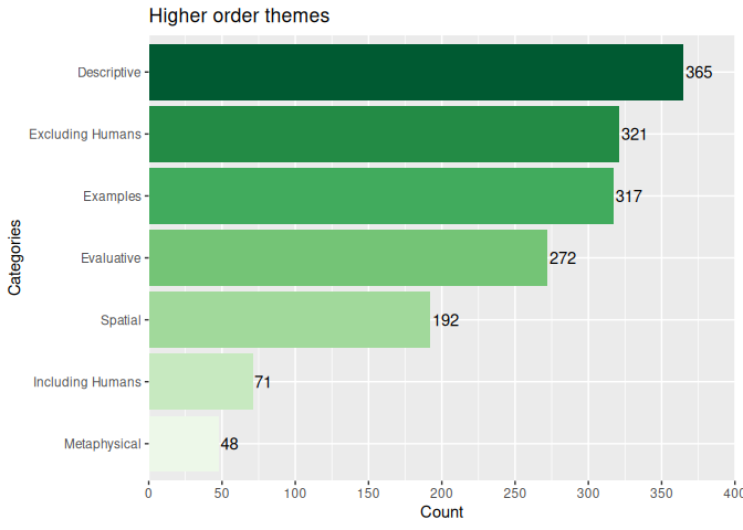 So far, the coding team has only manually coded 766 of these definitions. This document reports what we have found through this manual coding, as well as some of the natural language processing I have done using the R package Quanteda.